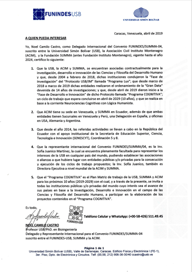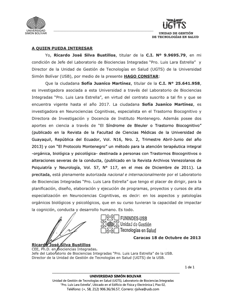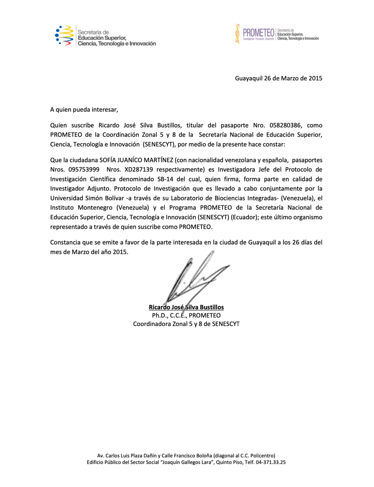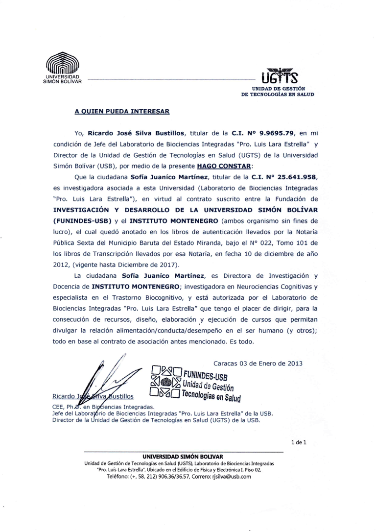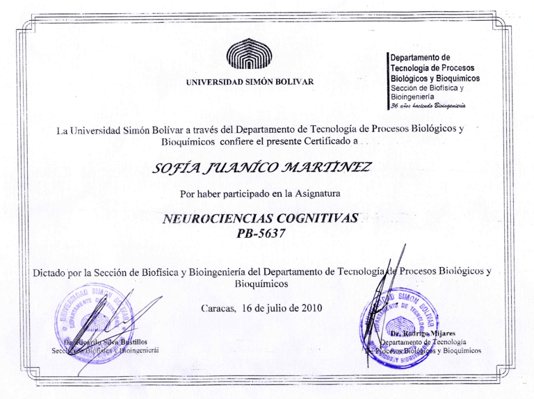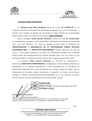 CERTIFICACIONES LABORATORIO DE BIOCIENCIAS INTEGRADAS-USB