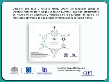 Divulgación del conocimiento en Neurociencias Cognitivas y Psicología de la Educación (Educación Emocional), en base a los resultados obtenidos por COGNITIVA Fundación a partir de sus propias investigaciones en Salud Mental.
