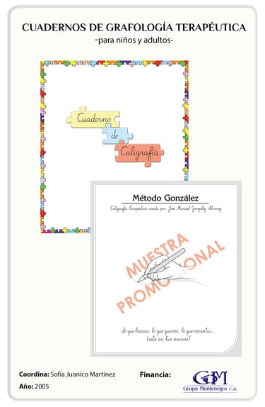 Conmemorando los 25 años de carrera del grafólogo y grafo terapeuta Manuel González (2005), en 2004 el Grupo Montenegro financia la elaboración del primer cuaderno de escritura grafo terapéutica para niños y adultos con el que se presenta al público por primera vez el Método González (en caracas Venezuela). En estos cuadernos, se incluyen el abecedario y números creados por el Dr. González, y cuya elaboración tuvo como propósito la inclusión de esta obra en el aula desde la primera infancia, así como en diferentes espacios terapéuticos, dado el alto beneficio que el grafo terapia tiene en la regulación de ciertos comportamientos y como ayuda a la eliminación de diferentes estados de inseguridad.