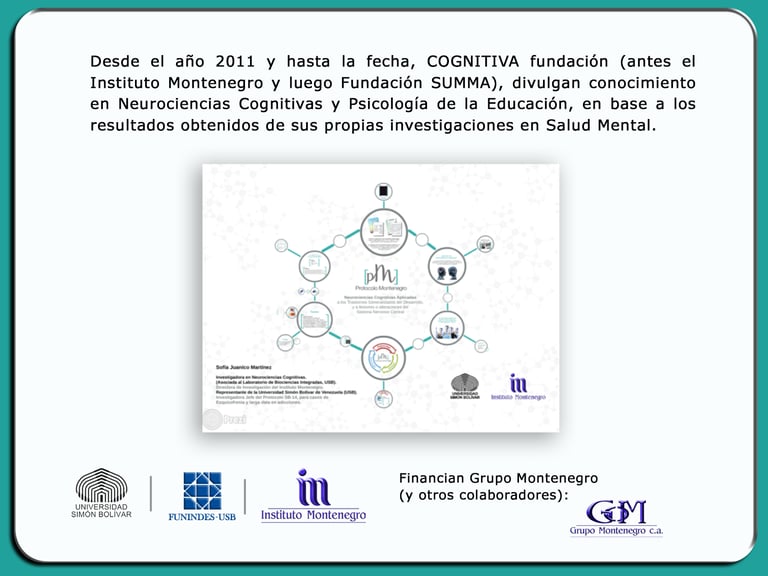 Financia: Grupo Montenegro: Instituto Montenegro, luego como Fundación SUMMA y finalmente como COGNITIVA Fundación.
