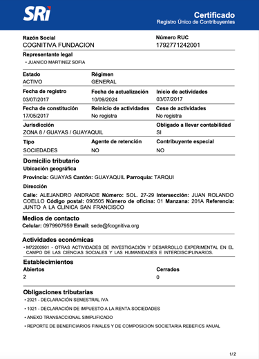 COGNITIVA FUNDACIÓN: RUC