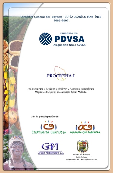 Proyecto de Integración Social elaborado bajo el Enfoque del Marco Lógico. Destinado al aporte de soluciones en salud, salud mental, educación y seguridad a favor de 2000 indígenas del Pueblo Jiwi que, en condiciones precarias, se desplazan para la época de cosecha desde Puerto Ayacucho en el Estado Amazonas, al municipio Julián Mellado en el Estado Guárico (Venezuela), (869 hombres; 928 mujeres; 11 adolescentes masculinos, 07 adolescentes femeninas; 111 niños y 74 niñas).